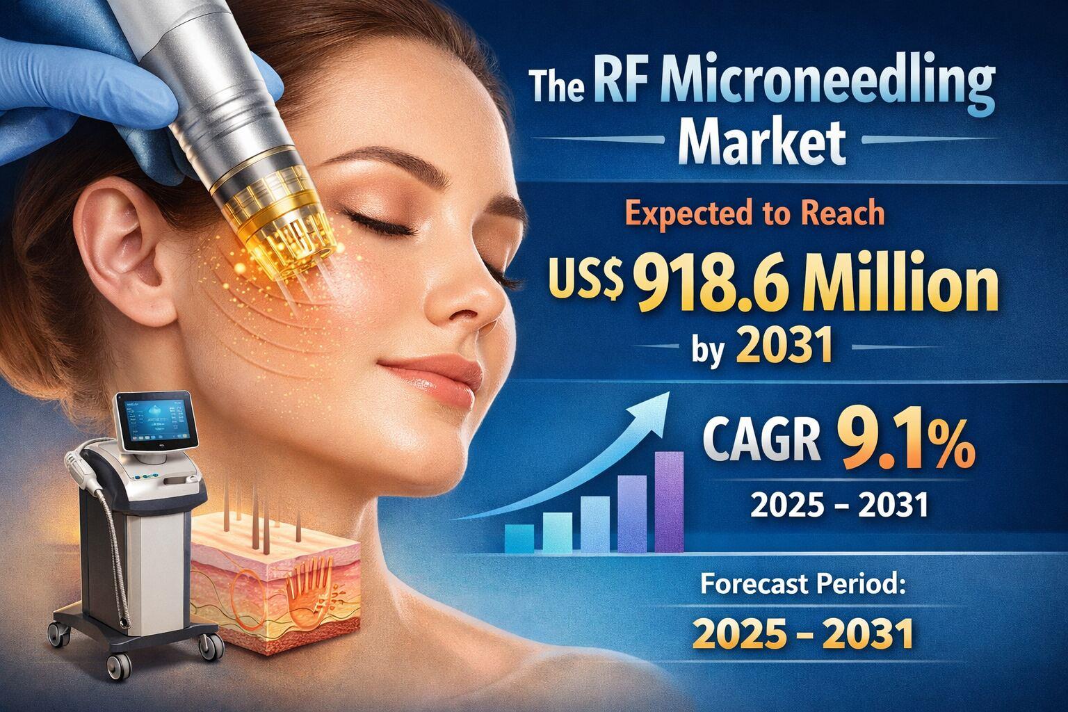 The RF Microneedling Market is set to witness significant growth, with its valuation anticipated to reach US$ 918.6 million by 2031. It is expected to expand at a compound annual growth rate of 9.1% between 2025 and 2031,reflecting steady demand for minimally invasive aesthetic solutions. RF microneedling combines controlled micro injury through fine needles with radiofrequency energy to stimulate collagen production and skin remodeling. This dual mechanism has made it a preferred treatment option for skin rejuvenation, scar reduction, and overall texture improvement.