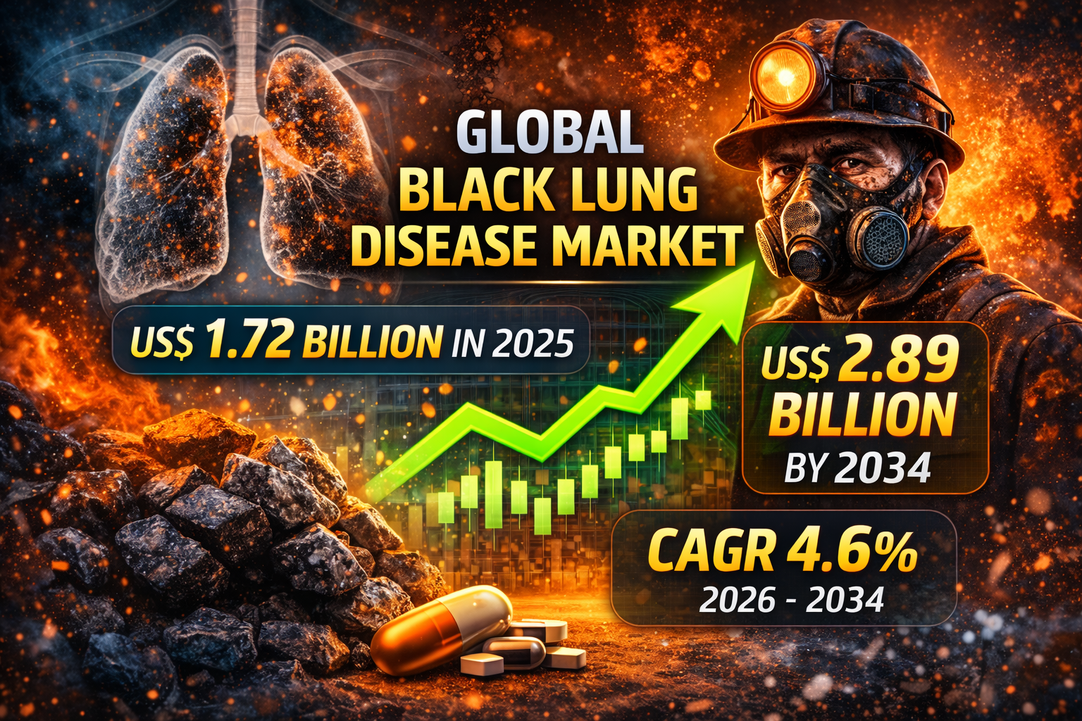 The Black Lung Disease Market is progressing steadily as occupational respiratory care gains policy focus and clinical investment. Rising case detection and long-term management needs are strengthening demand for advanced diagnostics and supportive therapies. The market is projected to grow from US$ 1.72 billion in 2025 to US$ 2.89 billion by 2034, at a CAGR of 4.6%.