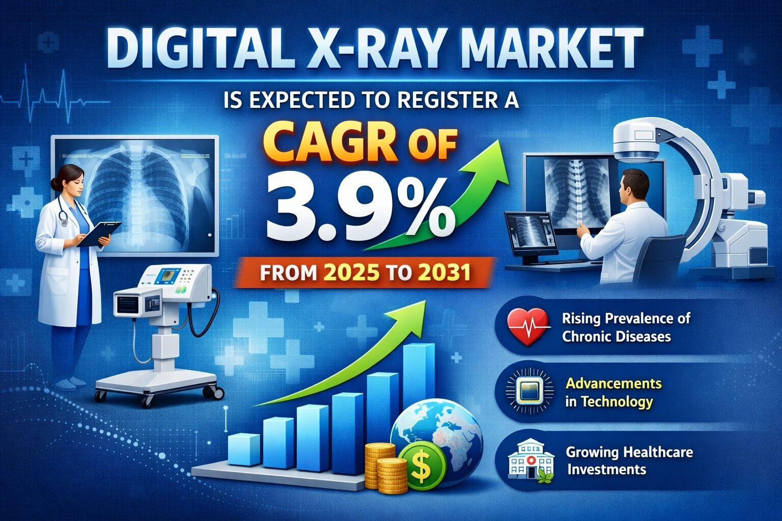 The  Digital X-Ray Market  is expected to register a CAGR of 3.9% from 2025 to 2031.  Growth is supported by increasing investments in healthcare infrastructure, rising demand for diagnostic imaging, and the growing prevalence of chronic diseases. Digital X-ray systems are widely used in many clinical applications including orthopedics, oncology, cardiology, and dental diagnostics. These systems allow physicians to detect diseases at earlier stages and support more accurate treatment planning.