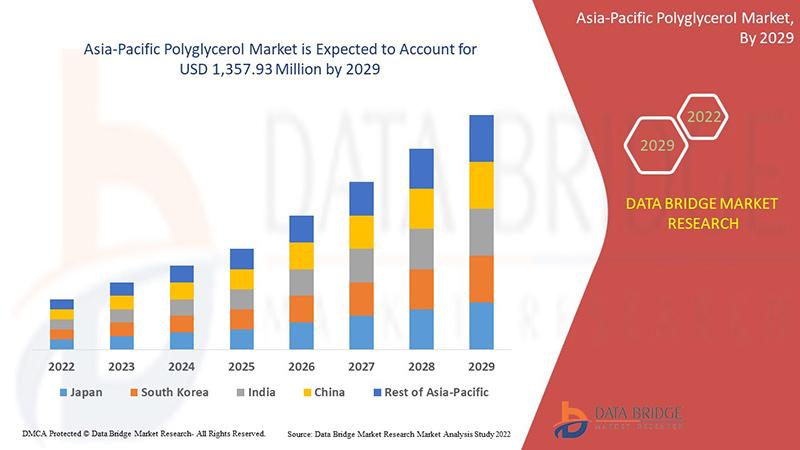 Asia-Pacific polyglycerol market is expected to grow significantly in the forecast period of 2022 to 2029. Data Bridge Market Research analyses that the market is growing with a CAGR of 5.9% in the forecast period of 2022 to 2029 and is expected to reach USD 1,357.93 million by 2029. Asia-Pacific Polyglycerol Market research report is a verified source of data and information that provides a telescopic view of the current market trends, situations, opportunities and status. These market research data analyses prime challenges faced by the Asia-Pacific Polyglycerol Market industry presently and in the coming years. The report gives CAGR (compound annual growth rate) value fluctuations for the specific forecasted period which is useful in deciding costing and investment strategies. It gives idea to other market participants about the problems that they might face while operating in this market over a longer period of time. Asia-Pacific Polyglycerol Market document is an explicit study of the Asia-Pacific Polyglycerol Market industry which explains what the market definition, classifications, applications, engagements, and global industry trends are.